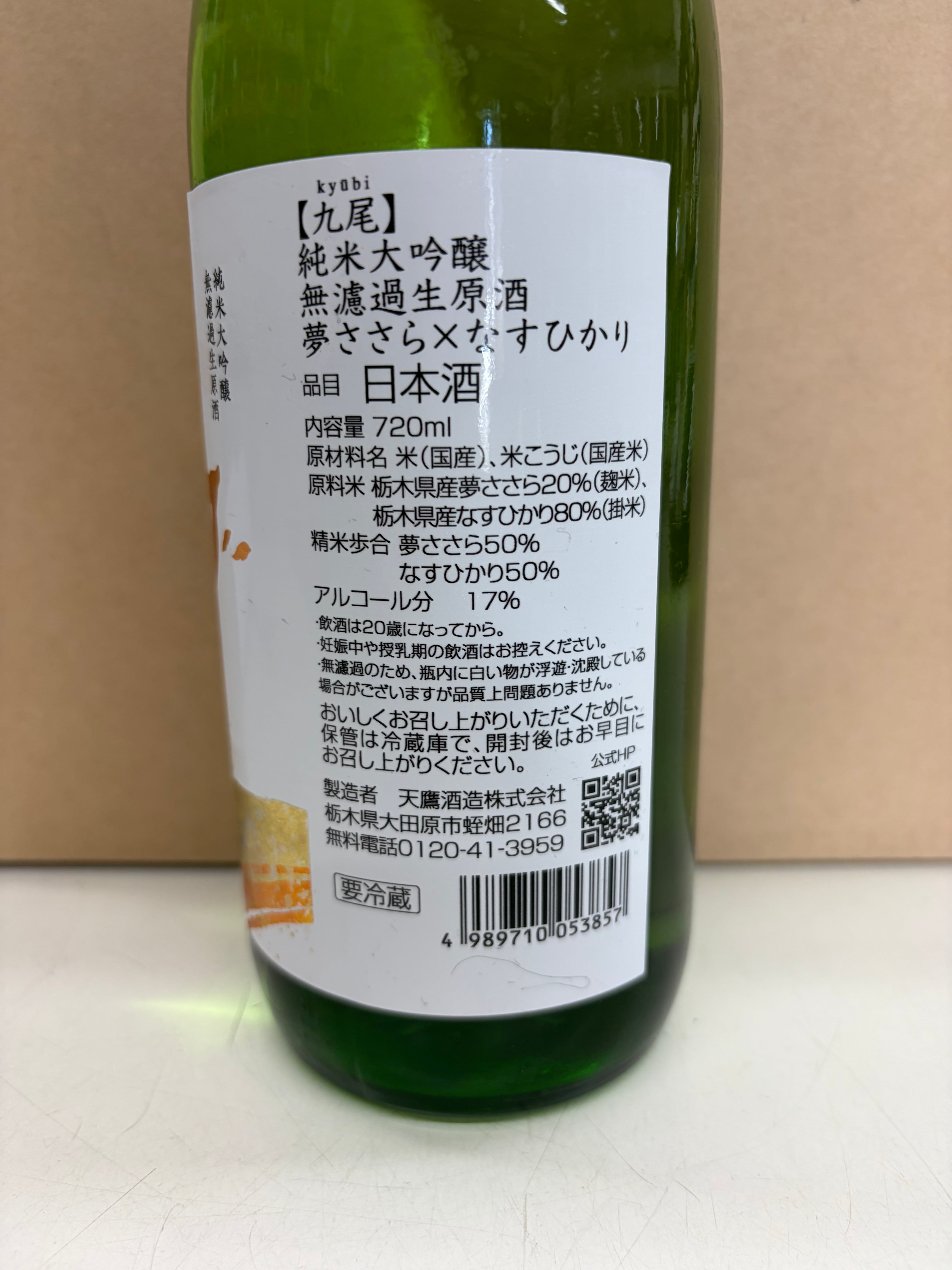 【九尾】純米大吟醸無濾過 夢ささら×なすひかり