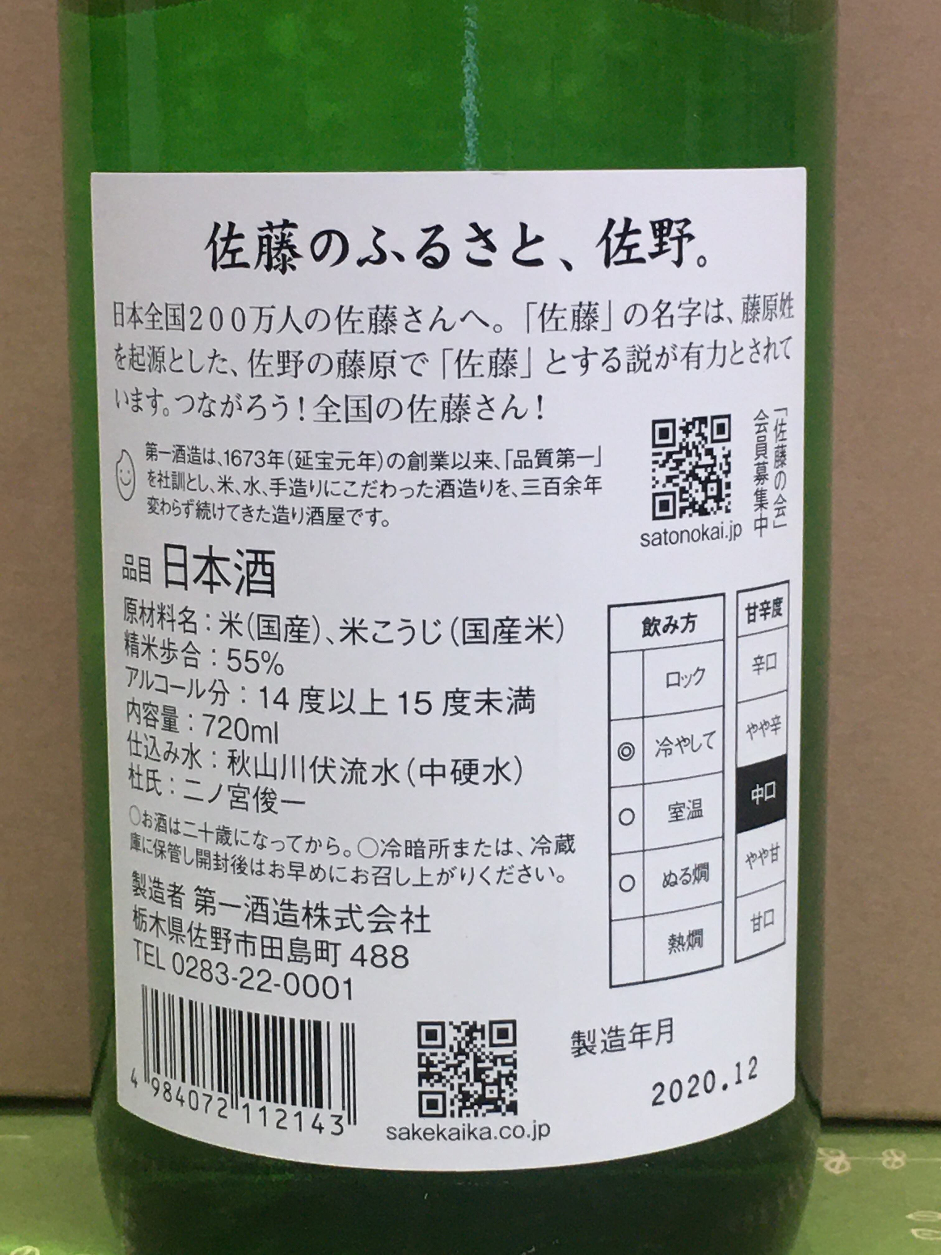 「開華 佐藤の酒」は、多くの佐藤さんにとって
