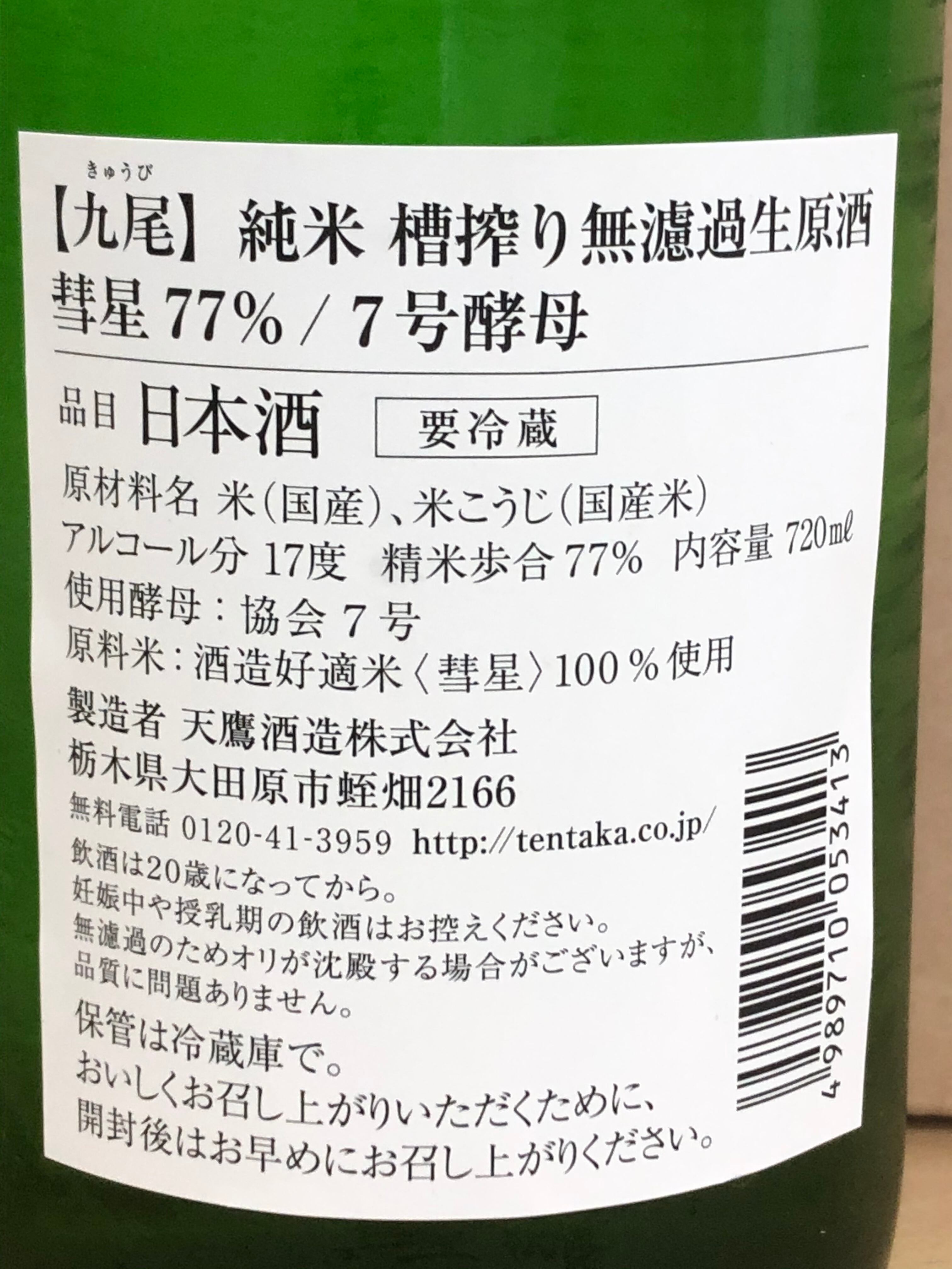製造者 天鷹酒造株式会社 栃木県大田原市
